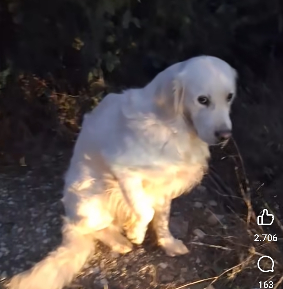 Прекрасен мил бел пес од видот Златен Ретривер со часови лојално чекал да дојдат да го земат неговите газди не знаејќи дека го оставиле само на себе.