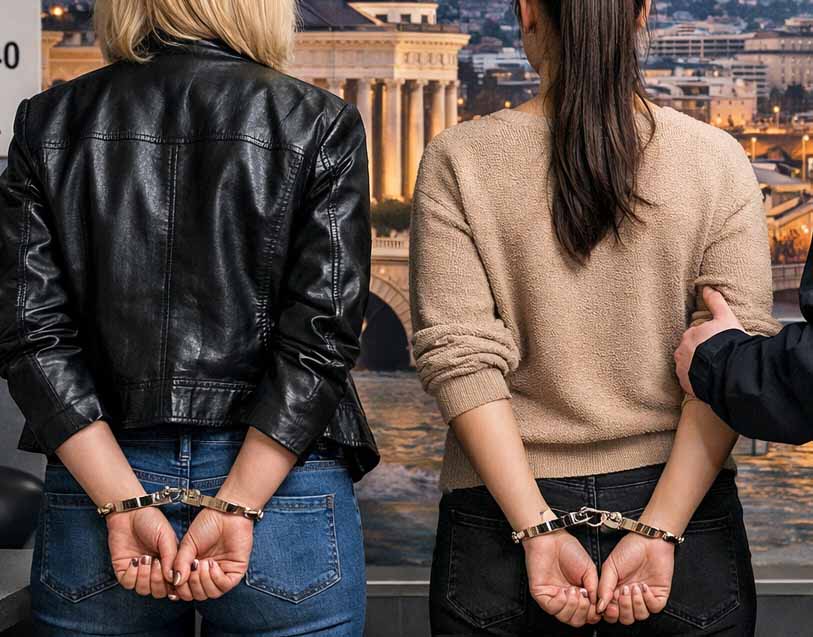 „На 15.02.2026 во 19:00 часот во Скопје, полициски службеници од СВР Скопје ги лишија од слобода 46-годишната Е.П. и 26-годишната Г.Г., двете од Република Грција. Тие се сомничат дека на 14.02.2026 во периодот од 18:15 до 18:35 часот од продажно место во Трговски центар на подрачјето на општина Аердором одзеле повеќе козметички производи.