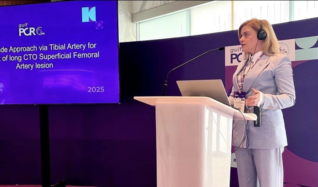 Особен фокус привлекла нејзината презентација на иновативниот пристап преку тибијалната артерија за третман на долги CTO лезии на површинската феморална артерија – тема што предизвикала интерес кај водечки експерти поради својата современост и практична вредност.