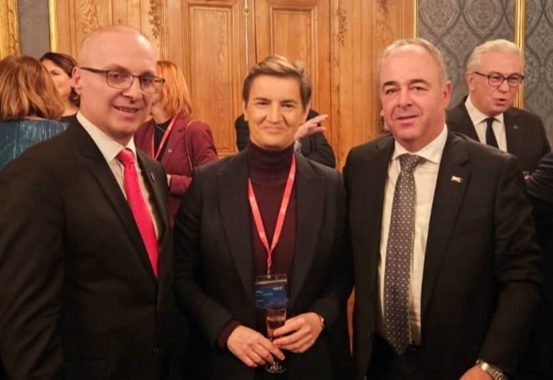 ,,🇲🇰🇷🇸 🇸🇮 На приемот во Стокхолм имав можност за средба со г-ѓа Ана Брнабиќ, претседателка на српската Скупштина. Одлична прилика да размениме мислење за регионалната соработка, ЕУ интеграциите, војната во Украина, како и за актуелните енергетски теми во Србија. Заедно со колегата г-н Даниел Кривец, потпретседател на Државниот збор на Словенија”, објави Милошоски вечерва.