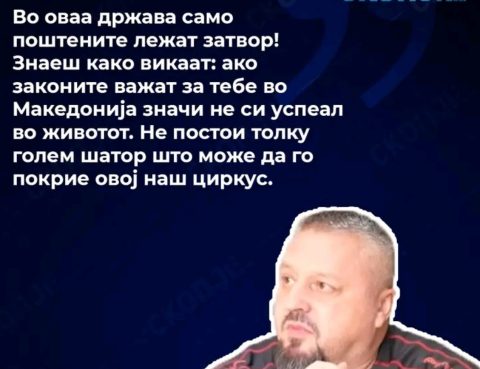 Тој додаде и: „Знаеш како викаат: ако законите важат за тебе во Македонија, значи не си успеал во животот“, како и „Среќа му се падна грепка со куќен притвор. Наместена лотарија“.