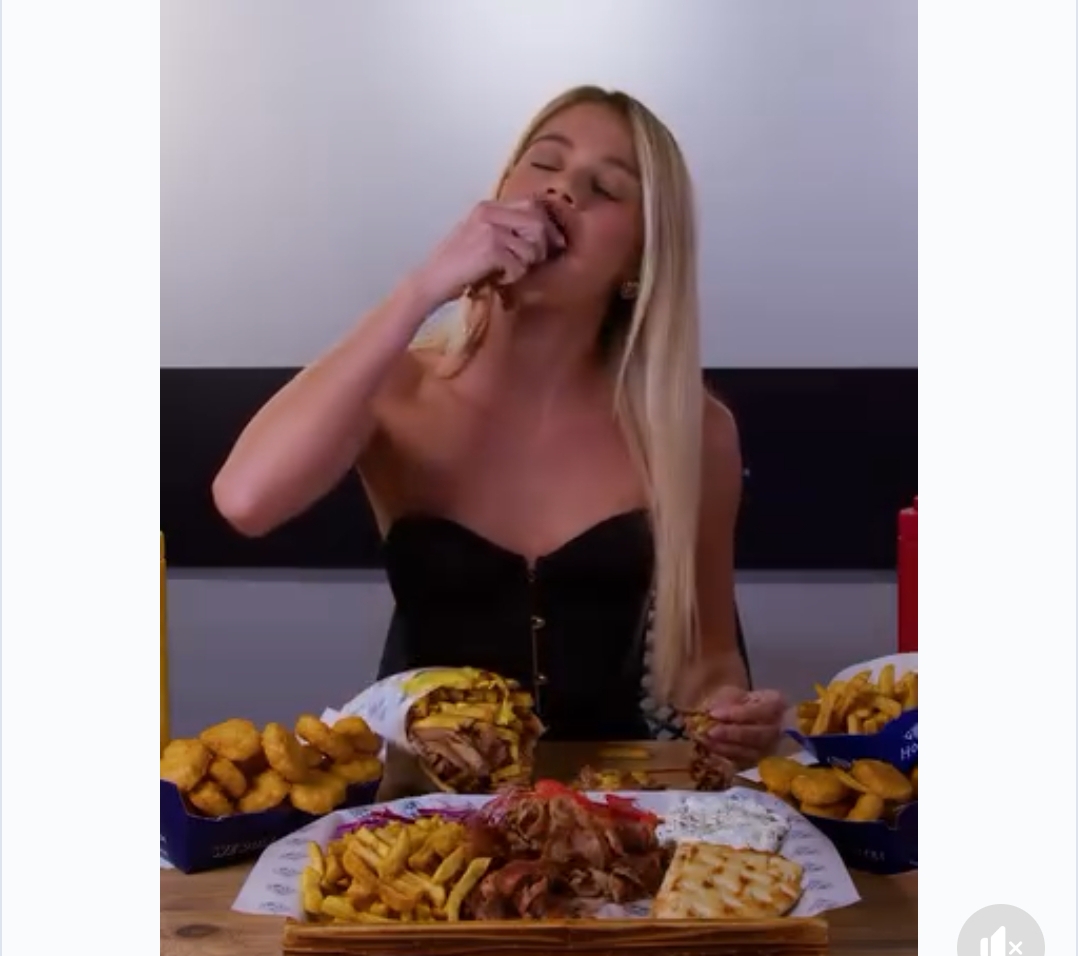 Во видеото се гледа млада инфлуенсерка која стана позната по својата изјава дека гардеробата и ташните што ги носи чинат десетици илјади евра а во рекламата јаде гиро и производи на Гиро Хаус како што ,,не треба”.
