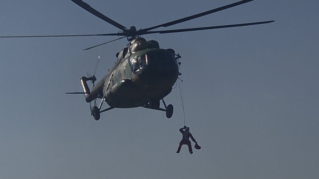 По краткиот прелет со транспортен воен хеликоптер од составот на вВИНГ, армискиот „Дедо Мраз“ додели новогодишни подароци.