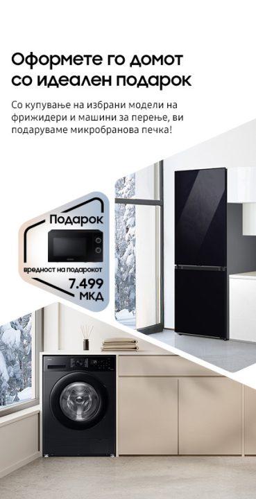 Најдоброто нешто што го направив за мојата кујна е еден мал, но моќен додаток кој го добив токму навреме. Samsung моментално ја има својата Зимска промоција, која завршува наскоро на 15 февруари. Со купување на избрани модели на фрижидери или машини за перење, добивате ПОДАРОК: Микробранова печка со стаклени врати (20 ℓ), во вредност од 7.499 МКД. Јас ја искористив оваа понуда и можам да кажам дека микробрановата печка стана клуч за брза ужина и едноставност во секојдневието кога секоја минута ми е скапоцена. Ова е вистинска прилика да ја подигнете домашната рутина на ново ниво и да добиете подарок што навистина ви користи.
