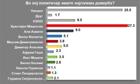 Христијан Мицкоски има петпати поголема доверба кај граѓаните отколку лидерот на опозицијата Венко Филипче.