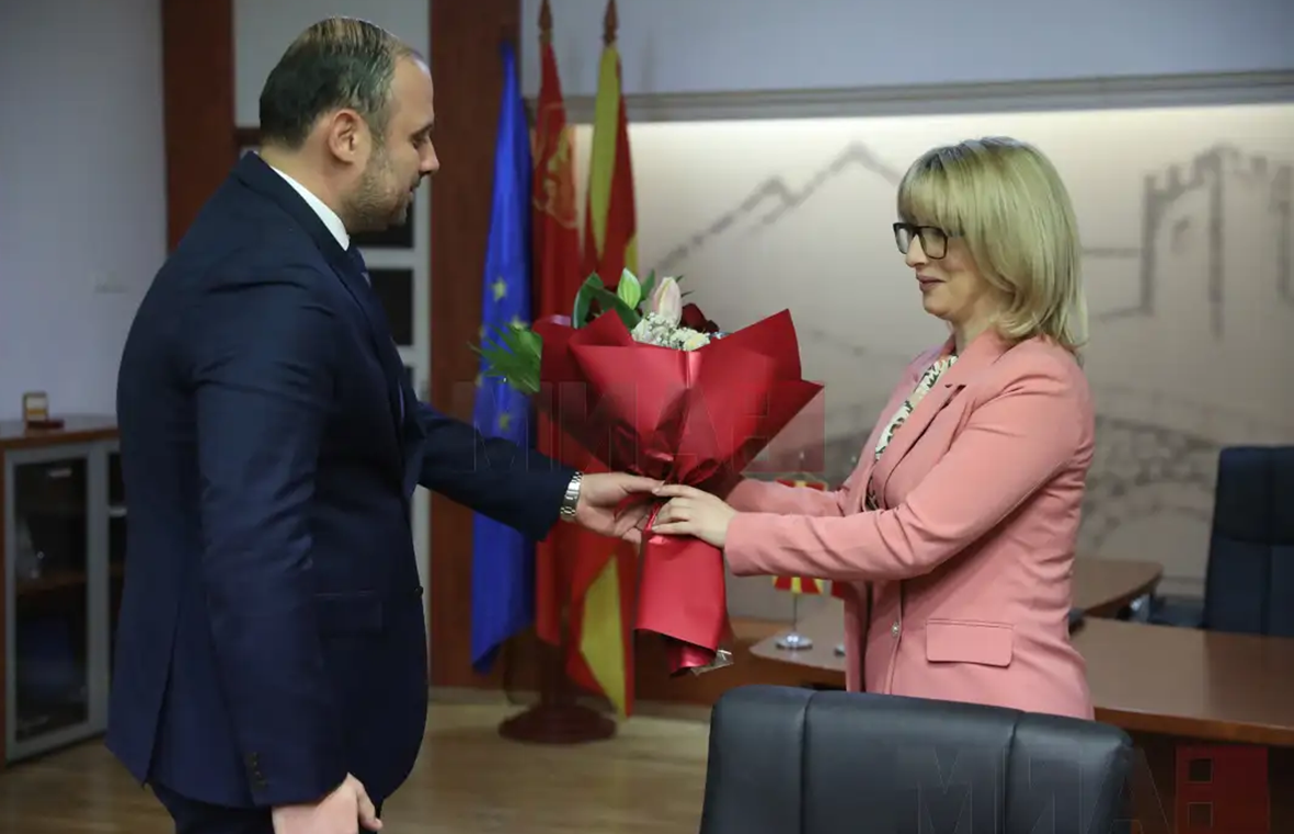 Новиот градоначалник на Град Скопје, Орце Ѓорѓиевски, ѝ подари букет свежо цвеќе на досегашната градоначалничка Данела Арсовска на кусата средба што ја имаа во градската управа на примопредавањето на функцијата – градоначалник на Град Скопје. Изминатиот период тие имаа вербални преписки на социјалните мрежи за ситуацијата со сметот во главниот град.