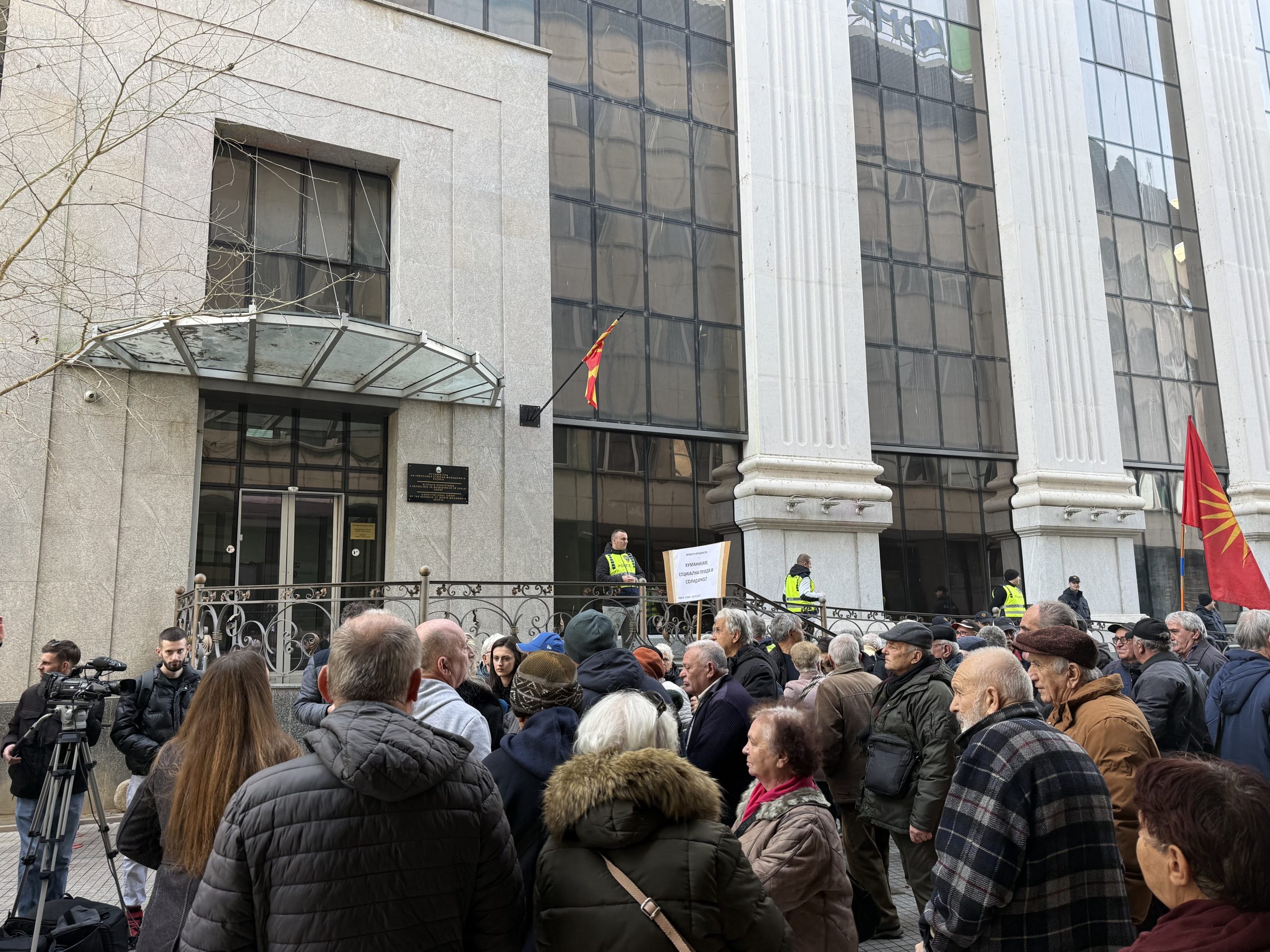 Пензионери од цела држава, особено оние со пониски пензии, денеска на пладне се собраа пред Уставен суд да го бранат линеарното покачување на пензиите по можноста дека ќе се преиспитува уставноста на последните законски измени на Законот за пензиско и инвалидското осигурување, најавени токму од овој суд. Тие сметаат дека е направено некои да земаат само 700-800 денари, а други да добијат 3-4 илјади денари покачување ако се врати процентуалното усогласување на пензиите.