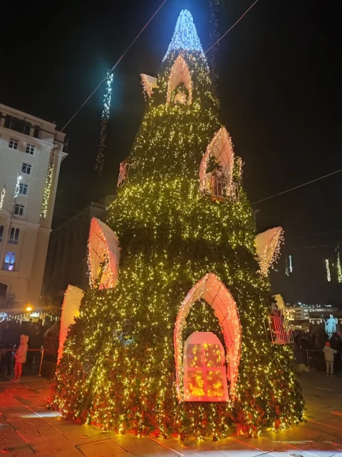 Со празнични песни, балетски точки и интересна програма пред неколку стотина посетитители, блесна новогодишната елка во центарот на Скопје – со ова започна вистинската магија во главниот град.