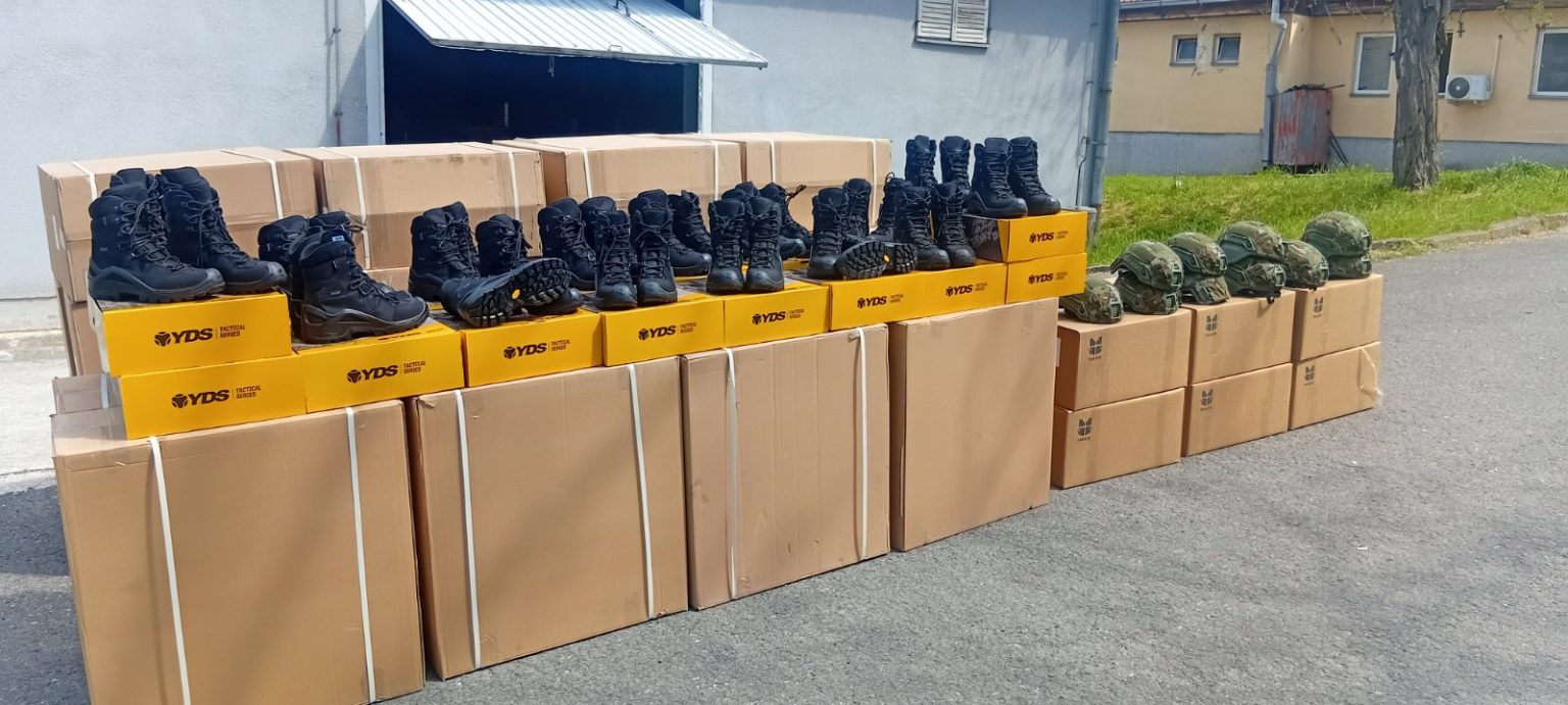 Опрема за лична балистичка заштита (шлемови) и теренски чизми денеска доби македонската Армија како дел од процесот за нејзино опремување.