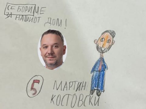 Кандидатот Мартин Костовски денеска објави фотографии од кои се гледа дека неговите ќерки цртале политички пароли за поддршка на нивниот татко.