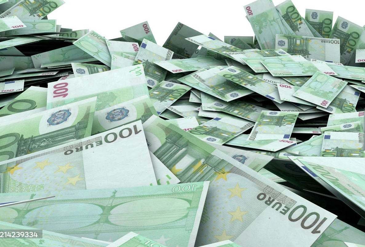 100 Euro banknotes isolated on white background