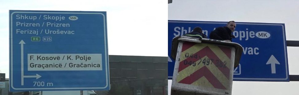 Фотографии од изменетите табли ги испрати Ќамил Фека, директор на одделот за патишта при Министерството за животна средина, просторно планирање и инфраструктура на Косово.