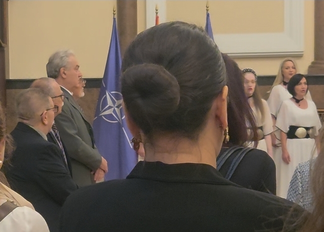 На свечената церемонија дел од лауреатите ја пееле државната химната посилно и пострасно за време на прекрасната изведба на хорот Света Злата Мегленска.