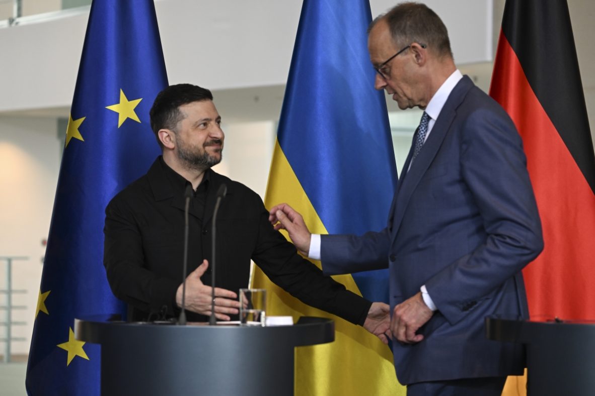Зборувајќи на заедничката прес-конференција со Зеленски во Берлин денеска, Мерц ја повтори „поддршката на германската влада за напорите на Украина да го намали бројот на украински мажи на воена возраст кои ја напуштаат [својата матична] земја“.