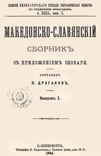 Така Бугаринот Драганов ја запознал и ја засведочил во Европа и Балканот етнокултурната и јазичната посебност на македонскиот народ, Тој ја афирмирал неуморно таа македонска засебност посебно во рускиот печат, пишувајќи за македонскиот јазик, за народното творештво и за етнографијата. Историчарот Блаже Ристовски во своите истражувања нагласува: „Неговите статии предизвикаа вонредно внимание во науката и во политиката од втората половина на XIX век и го изнесоа македонскиот проблем на европско научно ниво.“ Според него, „Македонско-словенскиот зборник’ на Драганов е е прв (и единствен) труд, што го претставува македонското поетско народно творештво под македонското национално име и толкувано од македонско национално гледиште – сѐ до Рациновите ’Македонско-народноослободителни песни‘ од 1943 година“!