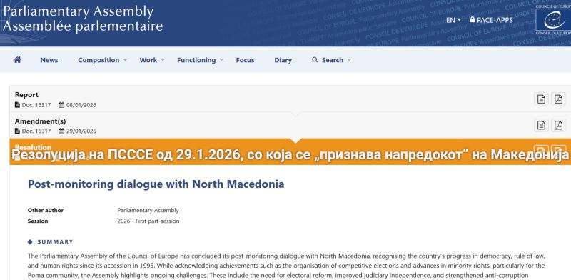 Само пред пред неколку седмици, на 29 јануари 2026 година Парламентарното собрание на Советот на Европа (ПССЕ), решавајќи да го затвори постмониторинг дијалогот со Македонија, во своја резолуција, „го призна напредокот на земјата во демократијата, владеењето на правото и човековите права од нејзиното пристапување во 1995 година.“ За што станува збор сега, има ли, или нема напредок Македонија?! Од каде ваква битна промена на оценките на Европскиот парламент и Советот на Европа за Македонија само по неколку седмици?! Пред да одговориме на претходниве прашања, да ги сопоставиме внимателно формулациите од 29 јануари и и овие најнови, во предлог-извештајот на Томас Вајц.