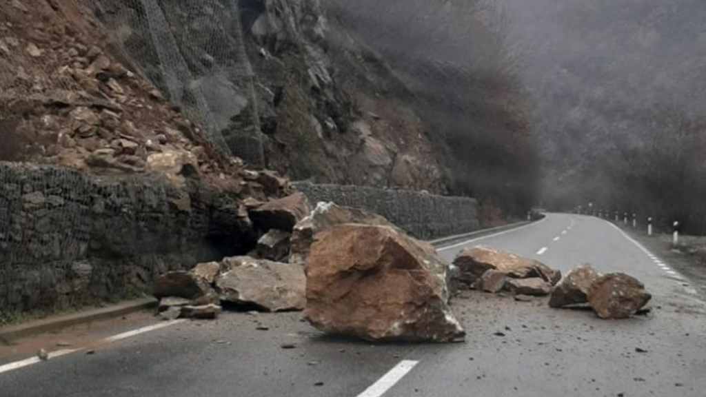 На патниот правец Охрид – Св. Наум, на потегот од с. Трпејца – Св. Наум, од 9,36 часот утрово сообраќајот се одвива по една коловозна лента поради одрон.