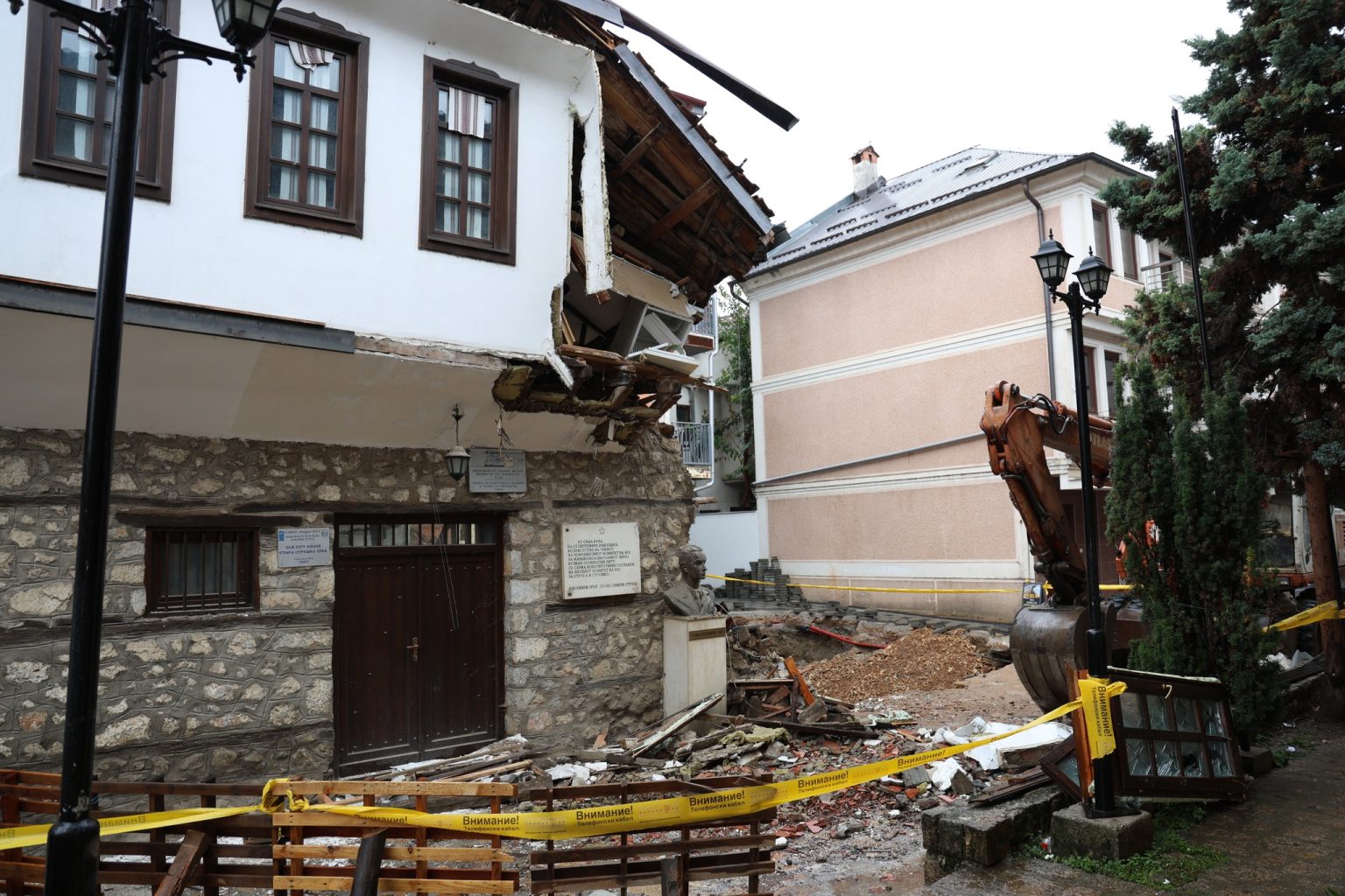 При изведба на градежни работи на индивидуален објект во старото градско јадро беше срушен јужниот ѕид и дел од кровната конструкција од куќа заштитена како културно наследство.