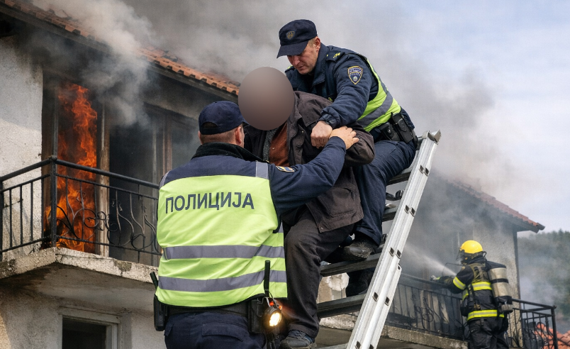 Полициски службеници од СВР Штип – Полициско одделение Македонска Каменица го затекнале сопственикот заглавен на тераса на вториот кат. По преземени мерки и со помош на скали безбедно го спуштиле.