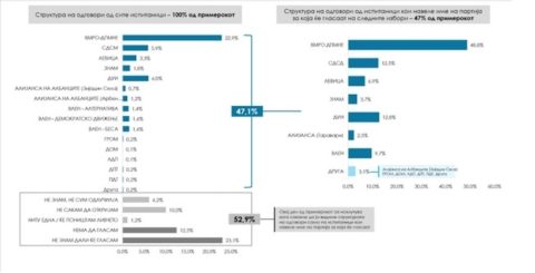 Професорот ги коментира резултатите на кој се групно прикажани резултатите од сите испитаници, вклучително и оние кои изјавиле дека нема да гласаат, не знаат дали ќе гласаат, не одлучиле за кого или не сакаат да откријат, се вели во реакцијата.