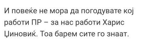 И повеќе не мора да погодувате кој работи ПР – за нас работи Харис Џиновиќ. Тоа барем сите го знаат.