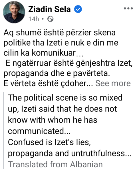 Преку својот Фејсбук профил, Зијадин Села директно му се обрати на Меџити, обвинувајќи го за лаги и пропаганда.