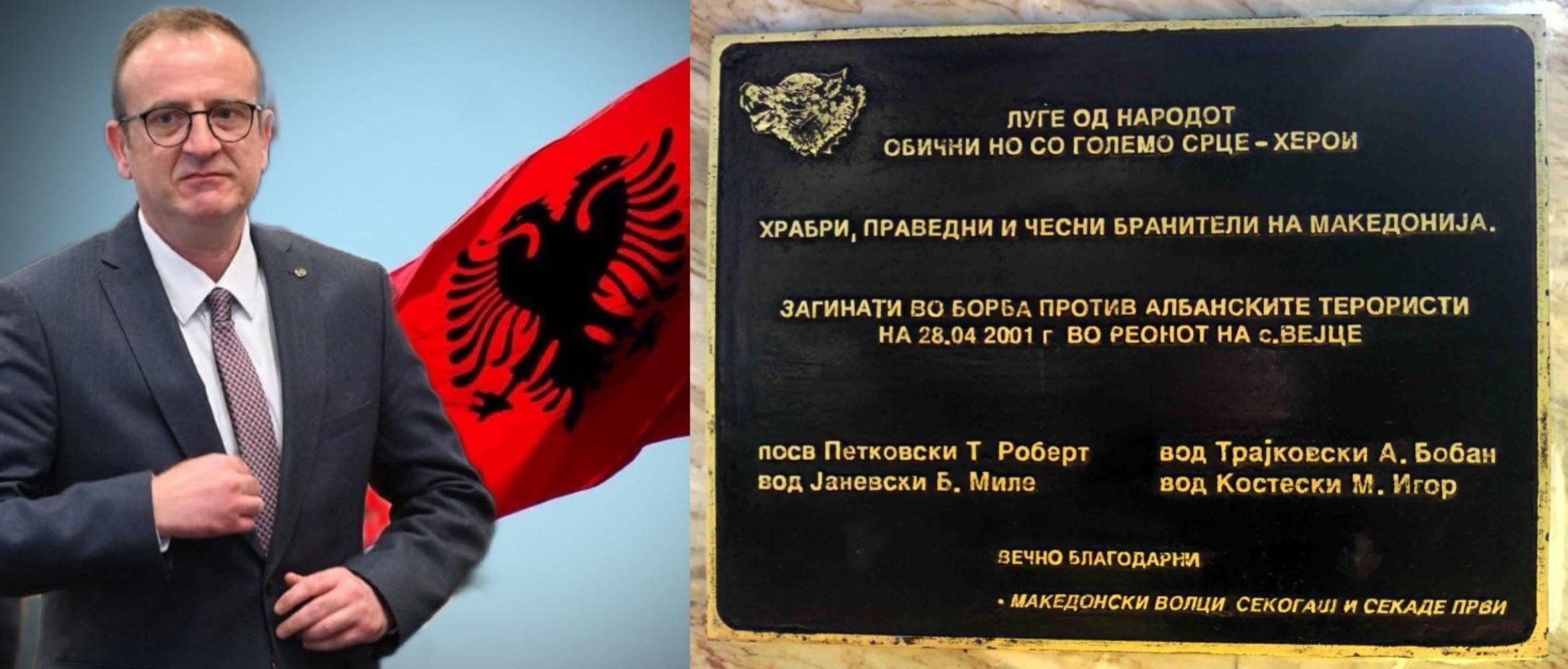 Според лидерот на АА, со терминот „албански терористи“, како што вели тој, се навредуваат Албанците и Охридскиот договор, потенцирајќи дека „борците на УЧК биле борци за слобода“, а не како што ги опишува плочата.