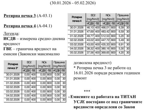 Емисиите од работата на ТИТАН УСЈЕ постојано се под граничните вредности определени со Закон
