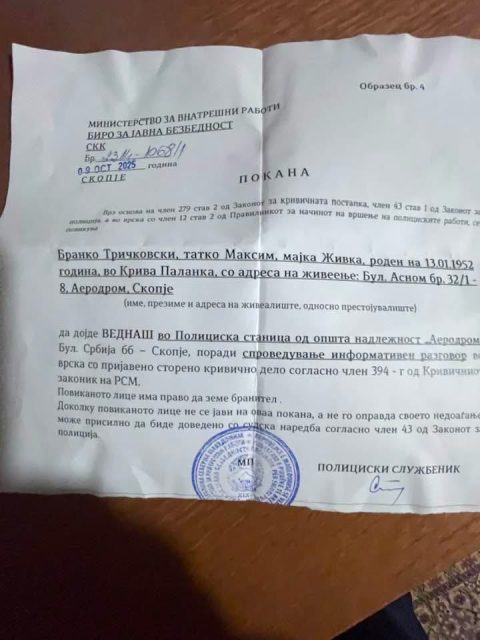 Полицијата констатира дека повикот за информативен разговор е резултат на пријави од граѓани поради содржината објавена на социјалните мрежи и дека презема дејствија за утврдување на сите околности. Од надлежните институции засега нема дополнителни официјални информации објавени за конкретните правни квалификации кои би биле применети по завршување на разговорот и документите.