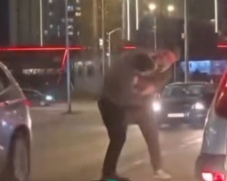 Видеото прикажува двајца мажи кои, пред очите на бројни возачи, влегуваат во директна физичка пресметка на сред улица. Наместо вербална расправија, ситуацијата брзо ескалирала во уличен „бокс-меч“