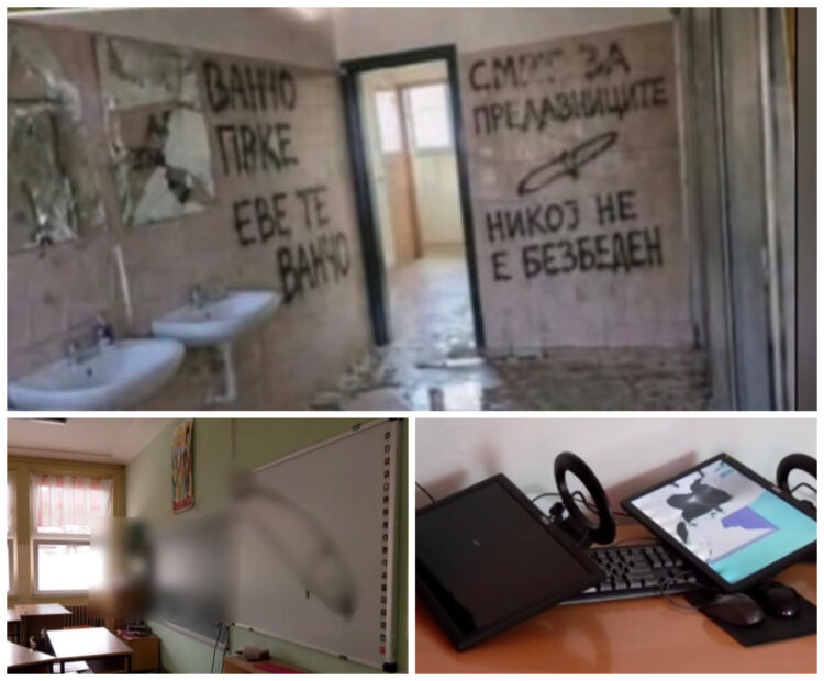 Ѕидовите на ходниците и на училниците се испишани со непристојни содржини, меѓу кои и со навистички свастики! Искршен е и дел од училишниот инвентар.