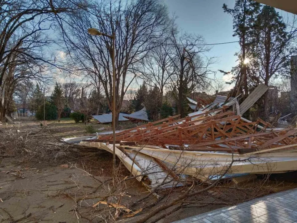 Поради силен ветер летнала лимената конструкција од кровот на СОУ „Јосиф Јосифовски“ во Гевгелија., објави Центарот за управување со кризи.