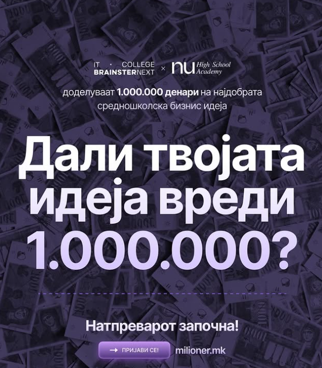 -Нашата цел е да им дадеме простор на средношколците да размислуваат како претприемачи, да развиваат креативни идеи и да учат преку реални предизвици. Во време кога младите бараат шанса да го покажат својот талент и визија, овој натпревар е токму тоа – платформа што ги мотивира да бидат проактивни и да ја гледаат иднината со повеќе можности, објаснува Огнен Трипуноски, оперативен директор во групацијата Бреинстер.