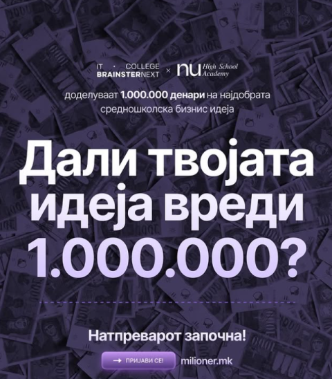 Денес официјално започнува најголемиот натпревар за средношколци во Македонија и регионот „СРЕДНОШКОЛЕЦ МИЛИОНЕР“, посветен на развојот на претприемачкиот дух и креативни бизнис идеи кај младите.