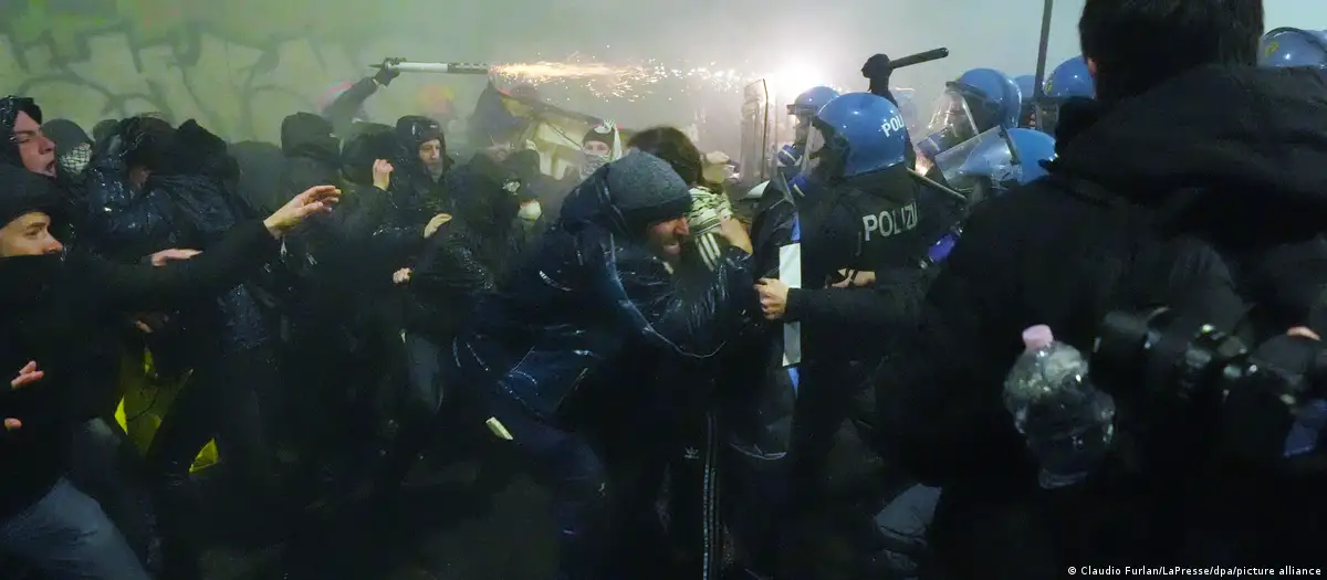 Илјадници луѓе се собраа во Милано во саботата на протест против Зимските олимписки игри (ЗОИ), еден ден по церемонијата на отворање во северниот италијански град, при што некои демонстранти фрлаа пиротехника и се судрија со полицијата. Група од околу 100 демонстранти, претежно радикални левичари, фрлаа петарди, димни бомби и шишиња кон полицијата откако се одвоија од главната толпа во Милано, градот домаќин на Олимписките игри, во саботата.