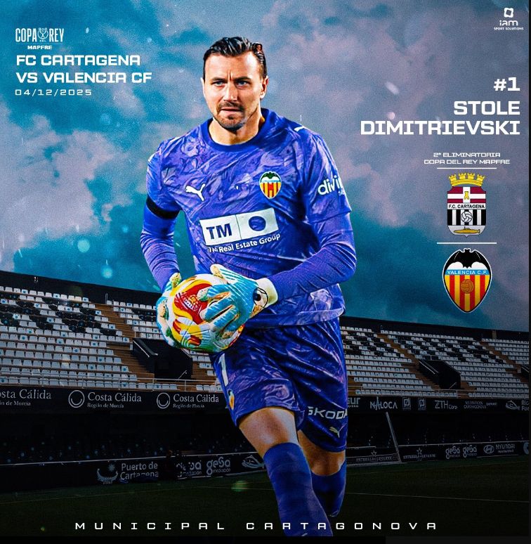 Столе Димитриевски ја спаси Валенсија од неочекувана елиминација во шпанскиот Куп на кралот со одбранет пенал во финишот од продолженијата кај третолигашот Картахена, по што неговиот тим постигна гол за победа од 2:1 и пласман во 1/16-финалето.