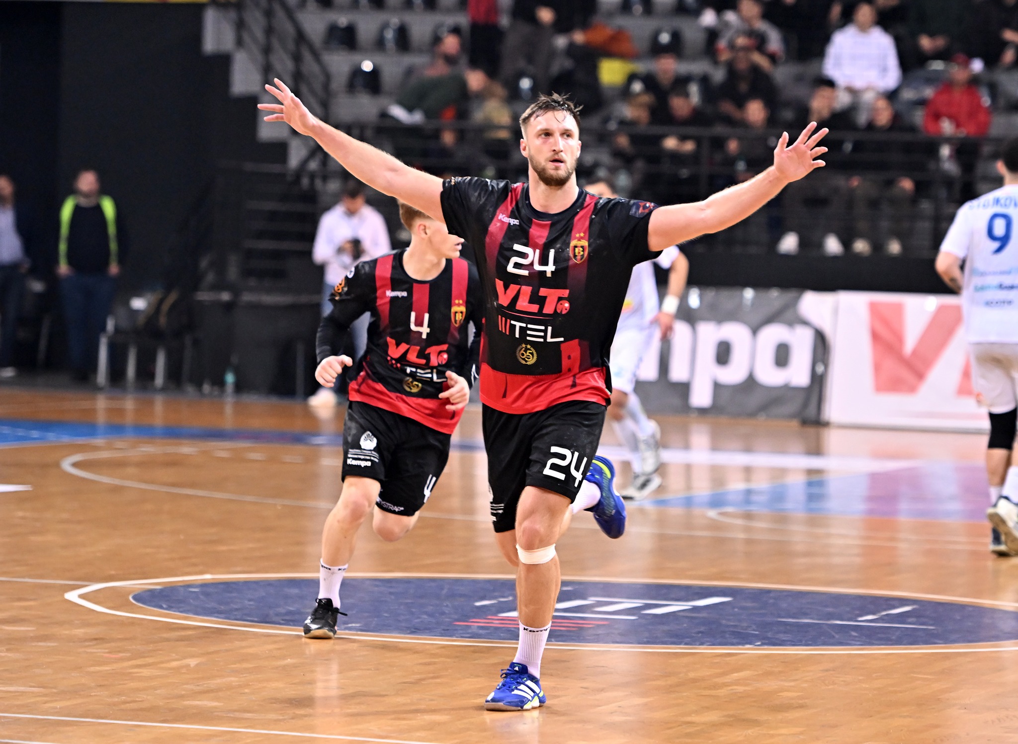 Првото полувреме заврши нерешено 17:17, а резултатската нишалка заврши по 22:21 за „црвено-црните“, кои од тој момент почнаа да создаваат и да ја зголемуваат предноста, која десет минути пред крајот достигна седум гола.