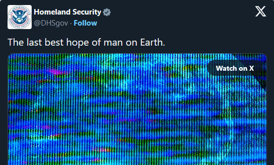 Министерството за внатрешна безбедност на САД (DHS) објави кратко видео на социјалните мрежи со пораката „Последната надеж на човештвото на Земјата“, преземена од говорот на Абрахам Линколн од 1862 година, во кој тој ги опиша САД како „последна надеж на човештвото“.