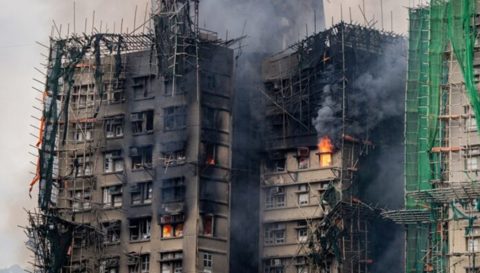 Пожарот избувна околу пладне во среда во комплексот, кој се состои од повеќе од 1.900 станови, и брзо се прошири поради бамбусовото скеле поставено однадвор за реновирање.