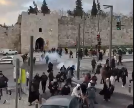 As the closure of Al-Aqsa Mosque continues, Israeli forces assault worshippers and fire tear gas toward them at Bab Al-Sahira. pic.twitter.com/SBlry9Mem0