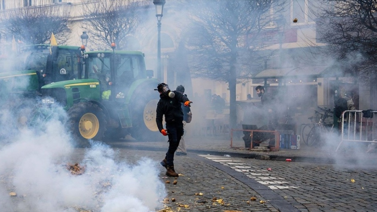 Ескалираше протестот на земјоделци од неколку европски земји во Брисел. Демонстрантите почнале да фрлаат камења, компири и пармезан и сирење кон полицијата, со што биле присилени да употребат водени топови. Пожари биле запалени и на други локации во Европскиот кварт, запалени факели како и обиди за пробивање на полициските блокади. Пред Европскиот парламент, ситуацијата повторно ескалираше кога околу стотина демонстранти фрлаа компири, цвекло, петарди и јајца кон полицијата, на што полицијата одговори со солзавец и водени топови.