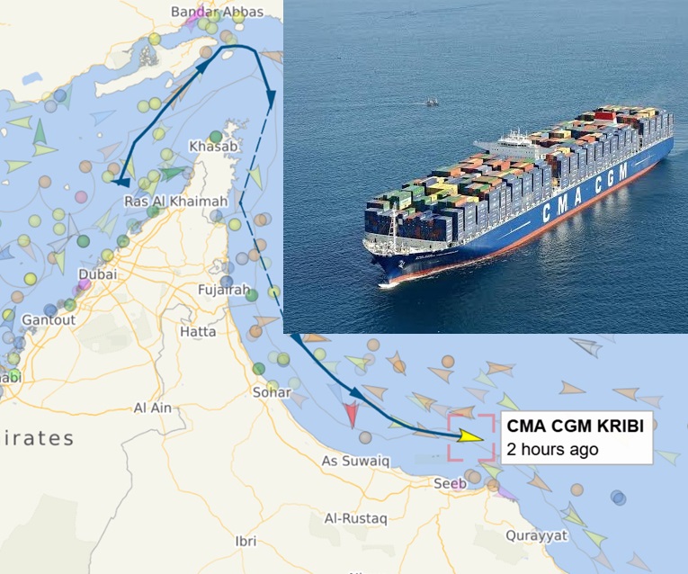 Бродот CMA CGM Kribi отплови од Дубаи кон Иран во четвртокот попладне по локално време, сигнализирајќи ја француската сопственост, покажаа податоците за следење на бродот.