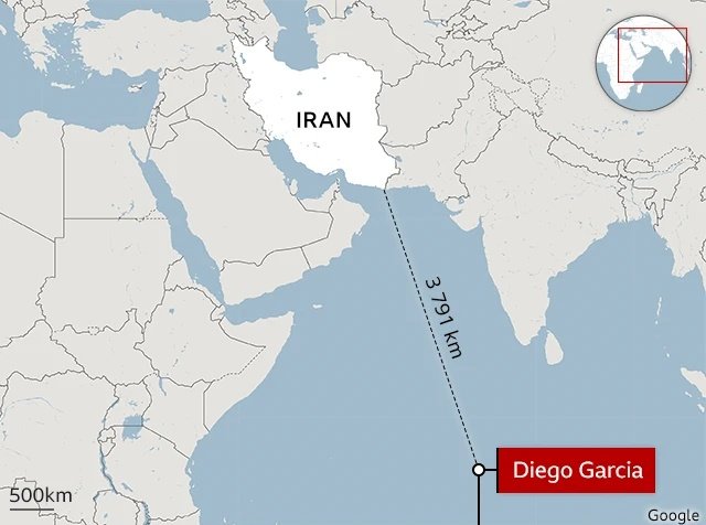 „Диего Гарсија“ на островите Чагос е една од двете бази што Велика Британија им дозволува на САД да ги користат за „одбранбени“ операции во Иран.