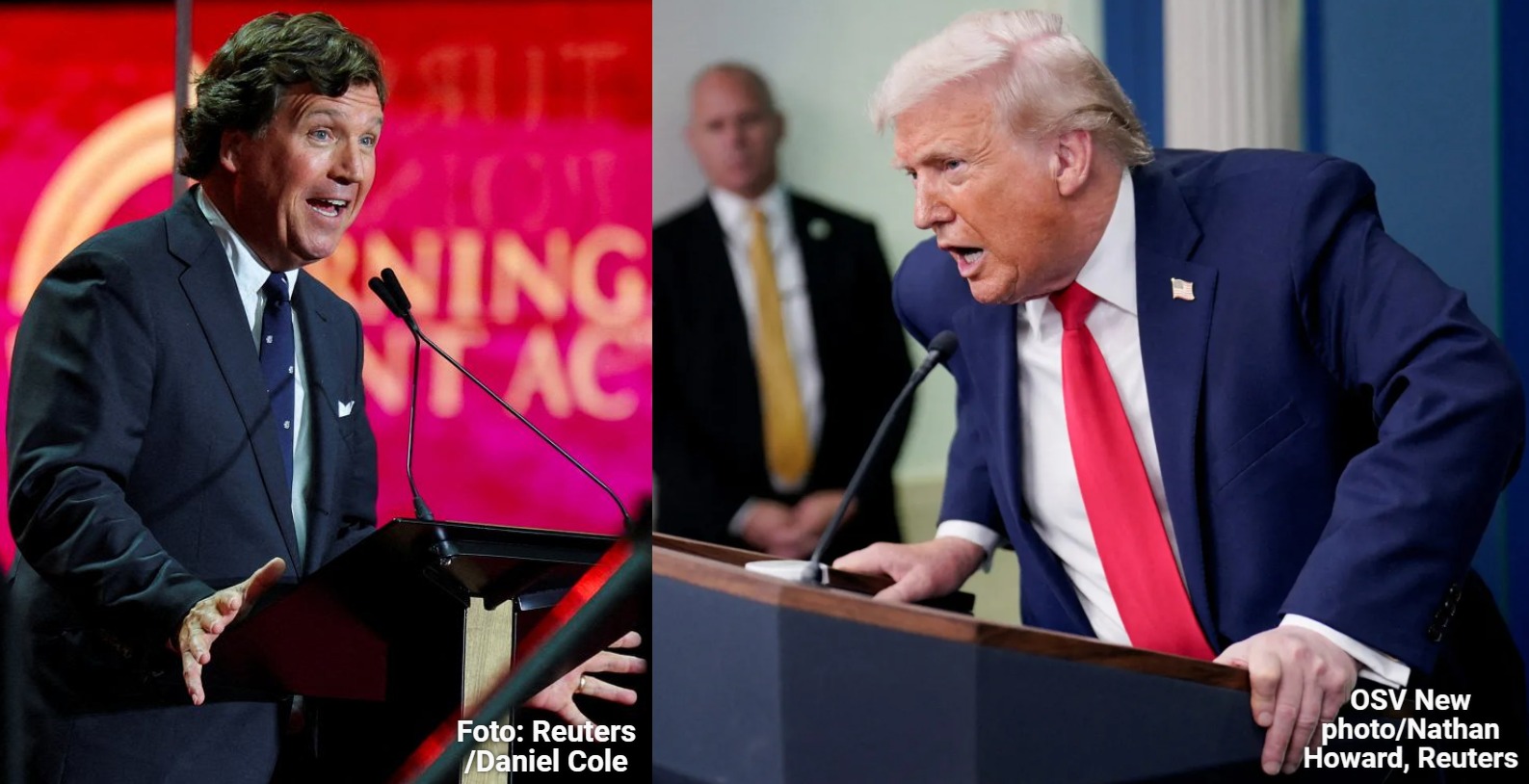 „Летав за Вашингтон трипати во последниот месец, за да се обидам да го убедам Трамп да не го напаѓа Иран. Не успеав. Му предложив да прогласи победа по убиството на 86-годишниот ирански верски лидер Хаменеи и да ги повлече силите. Но некој го убеди во спротивното..“ – изјави познатиот американски конзервативен новинар Такер Карлсон во својата емисија. Претседателот Доналд Трамп му возврати на Карлсон, со тоа што го исклучи од движењето „МАГА“ (Да ја направиме Америка повторно голема“ („MAGA – Make America Great Again“).