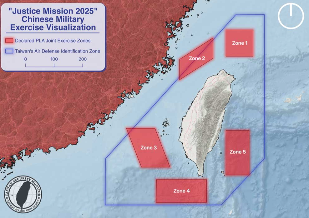 Народноослободителната армија на Кина (НОАК) денеска продолжи со вториот ден од големите воени вежби околу Тајван, наречени „Праведна мисија 2025“. Овие вежби се најобемни досега по површина и близина до островот, вклучувајќи истрелување ракети во водите северно и јужно од Тајван, симулација на блокада на клучни пристаништа и демонстрација на способност за спречување надворешна интервенција. Тајван во паника извади амерички M1A2T “Abrams” тенкови низ улиците.