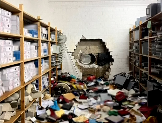 Истражителите се сомневаат дека бандата го поминала поголемиот дел од викендот внатре, провалувајќи во сефови. Провалата станала позната откако бил активиран противпожарен аларм во раните утрински часови во понеделник, а службите за итни случаи ја откриле дупката. Сведоците рекле дека виделе неколку мажи како носат големи торби на скалите од паркингот преку ноќ.