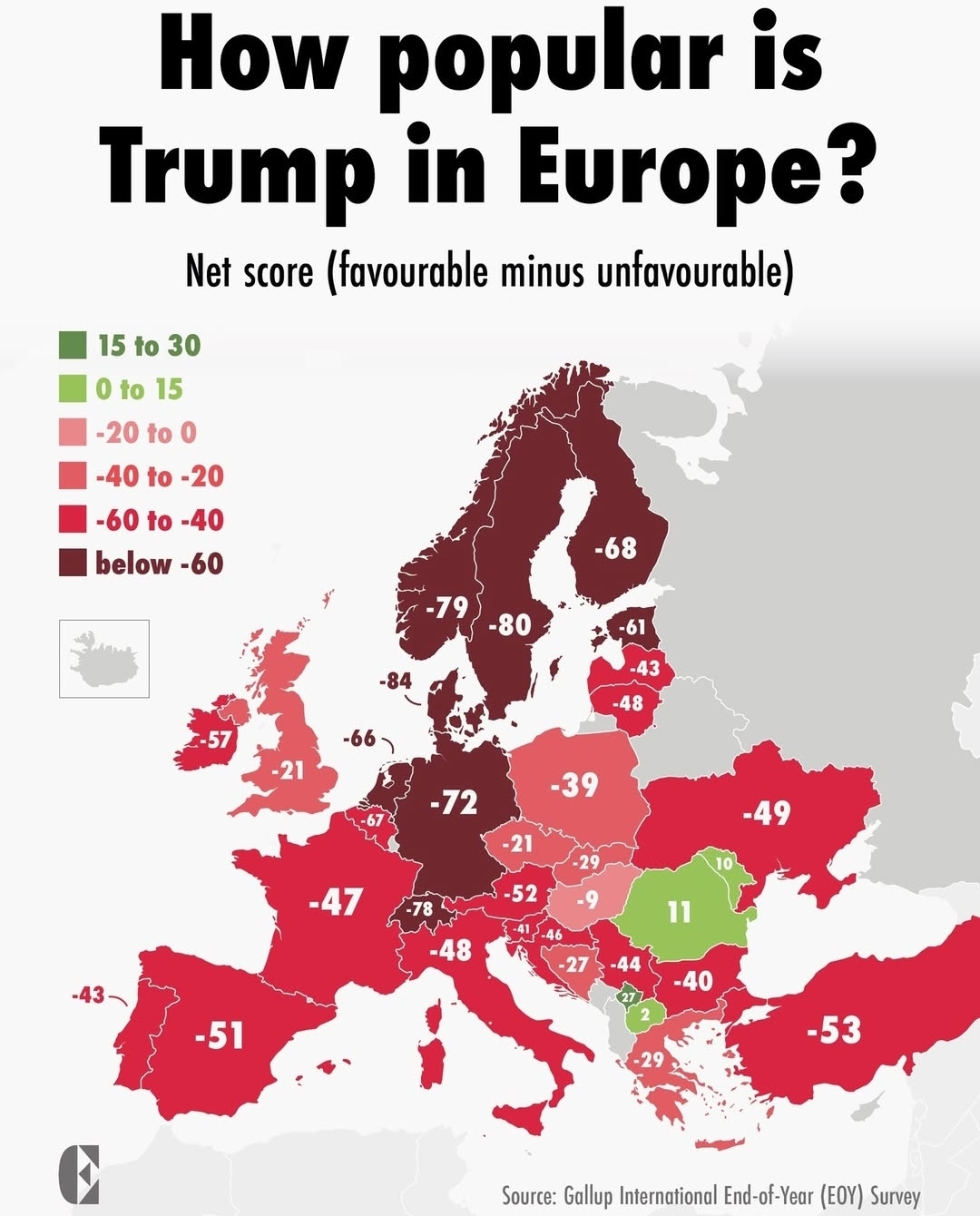 Користејќи го најновото истражување на крајот од минатата година на Галуп Интернешнл, се добива јасна слика за тоа како Европа го гледа Доналд Трамп.