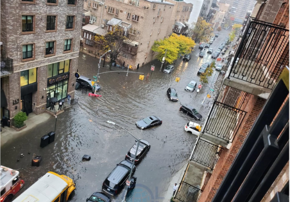 Њујорк е погоден од интензивни врнежи кои резултираа со два смртни случаи, поплави на улиците и откажување на стотици летови. Градоначалникот Ерик Адамс изјави дека бурата надмина повеќедецениски рекорди за врнежи и нагласи дека екстремните временски услови стануваат нова нормала за градот.