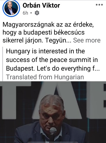 „За Унгарија, од фундаментален егзистенцијален интерес е самитот за мир во Будимпешта да успее. Да направиме сè за да се случи тоа“ заклучува Орбан.