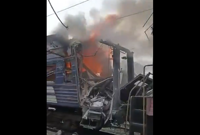 Украинскиот претседател објави на социјалните мрежи: „Дивјачки напад со руски дрон врз железничка станица во Шостка, Сумиската област“.